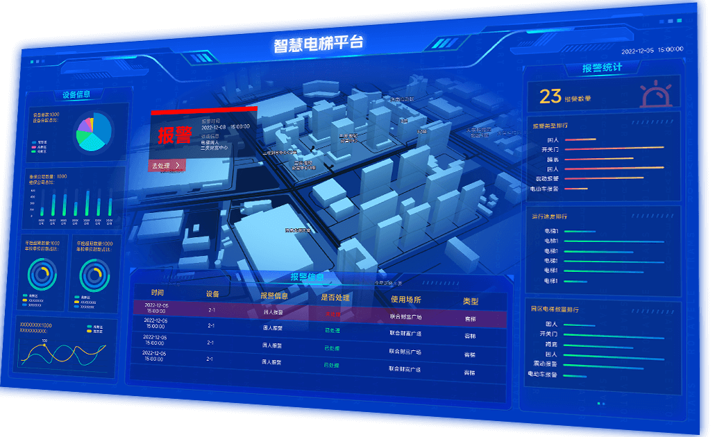 智慧电梯监管系统通过对电梯进行数字化监管,实现数字化救援和按需维保,打通政府、公众、物业、维保单位、电梯厂家通道,形成全过程闭环管理。实时采集电梯运行数据以及状态,实现电梯远程状态监管、按需维保、无纸化维保、故障预测、电动车智能检测、危险行为监测、一键报警、广告发布、可视对讲、数据分析等功能。